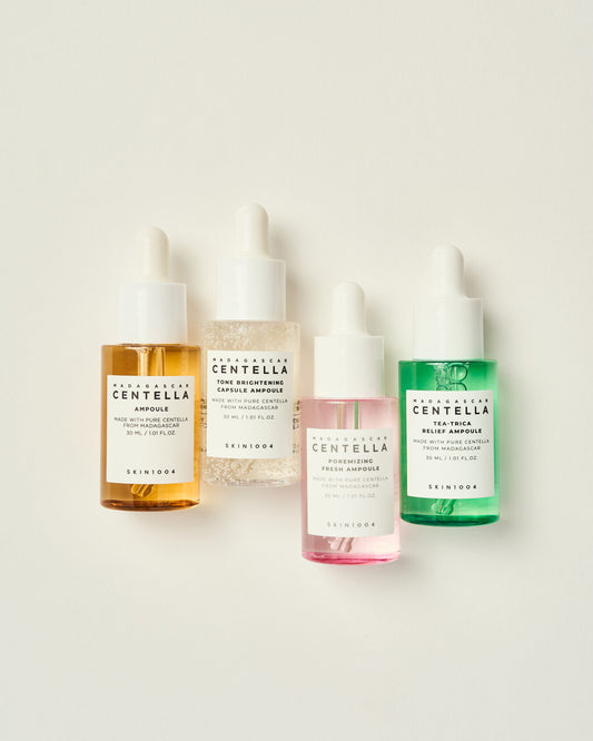 Creyendo que los buenos productos para el cuidado de la piel comienzan con ingredientes de alta calidad, SKIN1004 persiste en usar las mejores hojas de centella de Madagascar para producir la 'Línea Centella'. Los productos de esta línea están hechos con ingredientes esenciales mínimos para un cuidado de la piel suave pero efectivo, excluyendo conservantes o químicos nocivos innecesarios. Esta línea se recomienda para pieles sensibles, normales y acneicas que necesitan calmar y fortalecer la barrera cutánea: