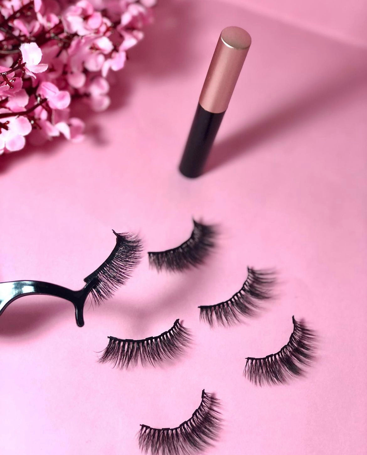 Kit de 6 diferentes modelos de pestañas, acabado natural para el dia y mas dramatica para noche, incluye delineador magico con pegamento y pinzas para aplicar