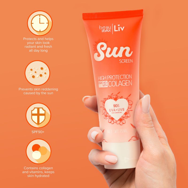 Protector solar que cuida y protege la piel, previene el envejecimiento y el daño causado por los rayos UV, su formula enriquecida con colágeno y vitaminas que aportan hidratación y elasticidad para lucir una piel fresca y radiante todo el dia. Al ser transparente no deja una capa blanca en la piel, y su textura en gel permite una adherencia correcta del maquillaje.